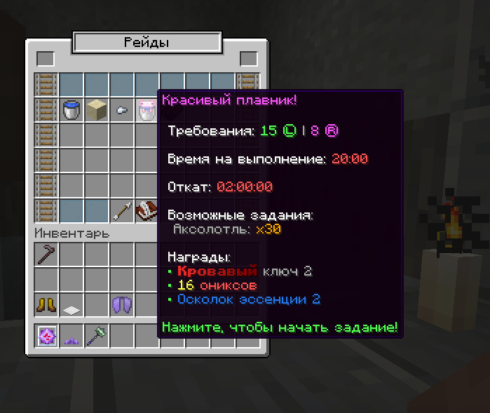 - НПС для квестов — отвечают за задания на убийство мобов и вскапывание блоков (Экспедиции и Рейды)