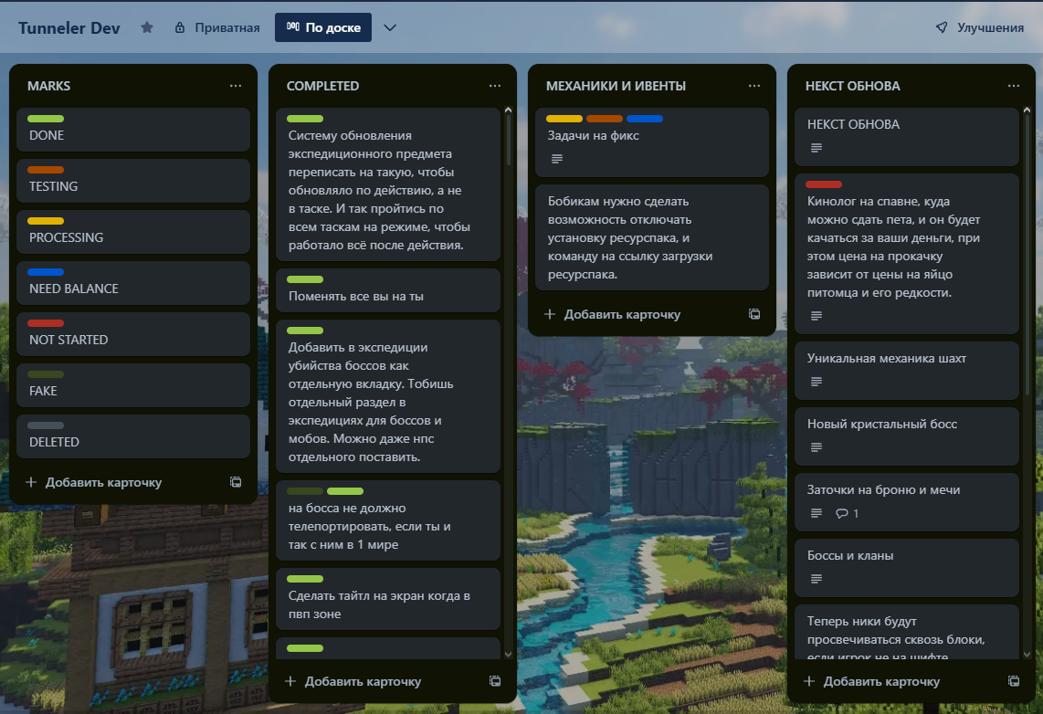 - Шахты - на данный момент реализована часть шахт, из того списка, что я имею в планах.